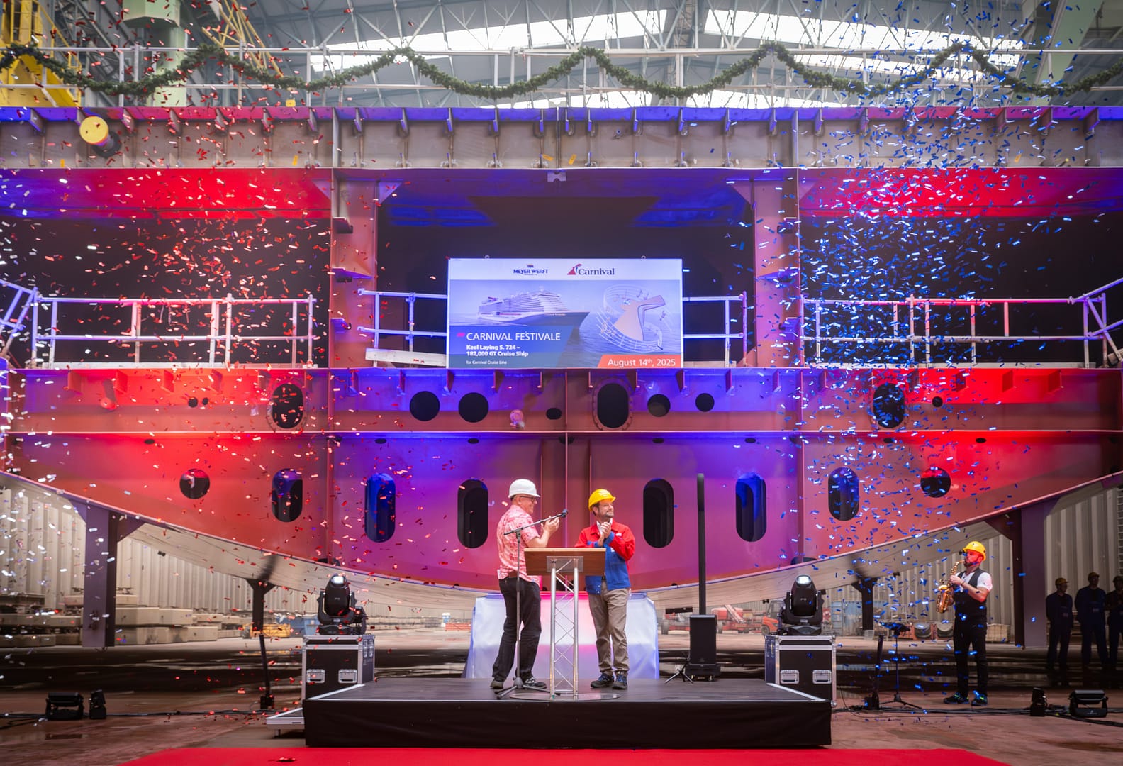 Strike up the band! In keeping with maritime tradition, a keel laying ceremony took place yesterday at Meyer Werft in Papenburg, Germany for Carnival Cruise Line’s newest Excel-class ship, Carnival Festivale, set for delivery in spring 2027.