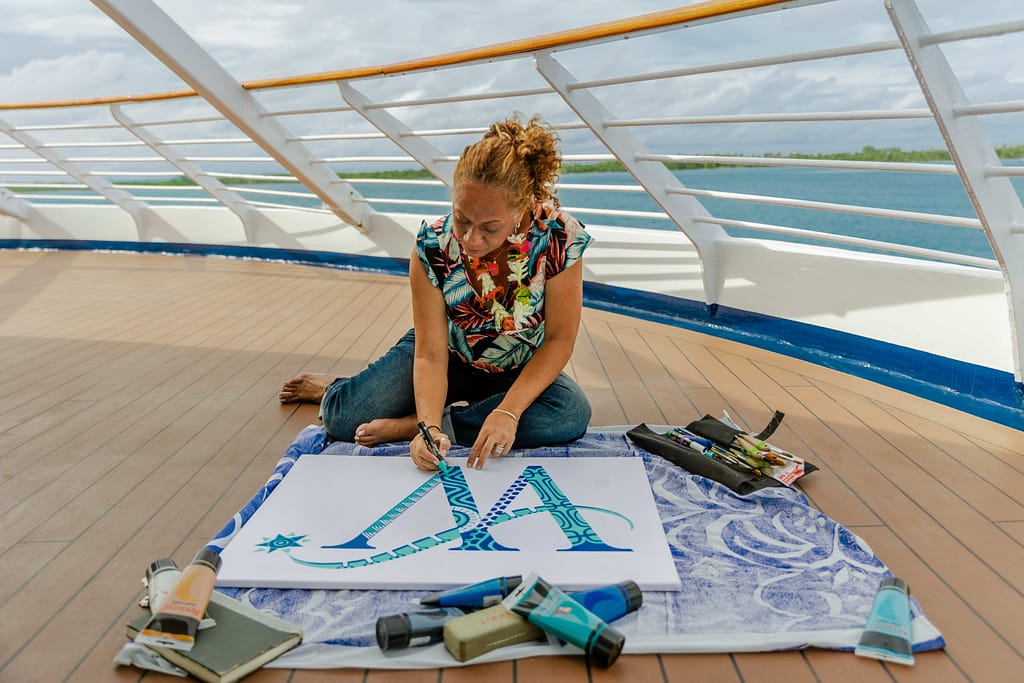 A second artist also joins each voyage as an instructor, transforming the Screening Room into a hands-on art studio with intimate painting workshops, lively Paint & Sip classes and more.